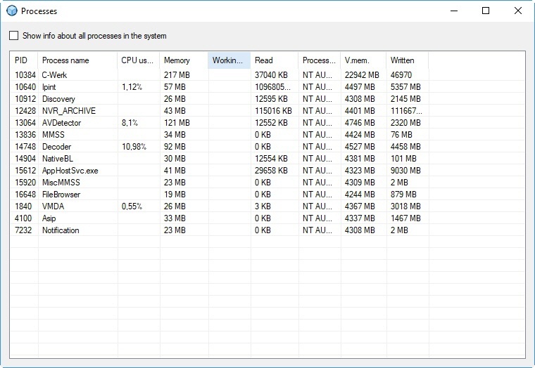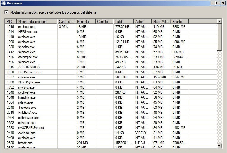La colocación del marcador Mostrar información sobre todos los procesos del sistema permite ver todos los procesos que se ejecutan en el ordenado.