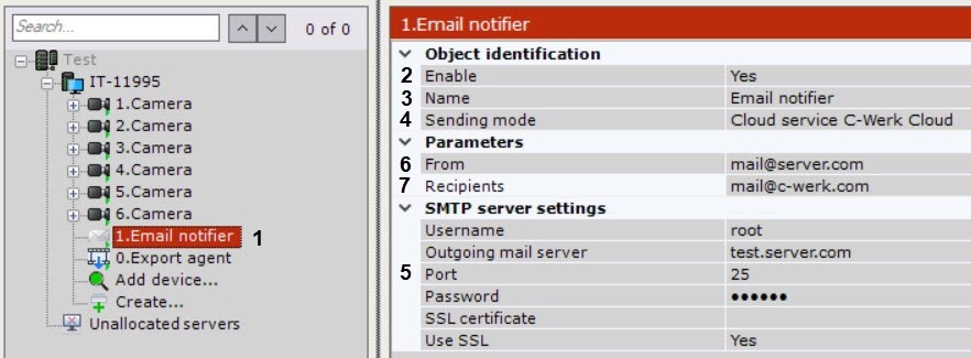Select the mode for sending the E-mail notifications: through C-Werk Cloud or through the specified SMTP Server (4).