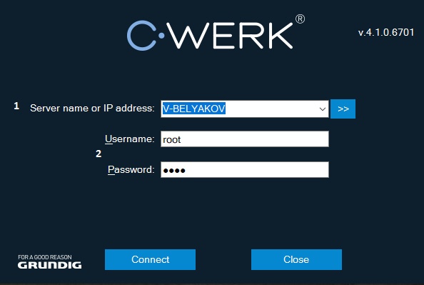 To connect to the Server, you must either create a new C-Werk Domain based on the server or add the Server to an existing C-Werk Domain.