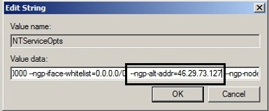 2. Enter the IP address in the --ngp-alt-addr value of this parameter as shown in the figure.