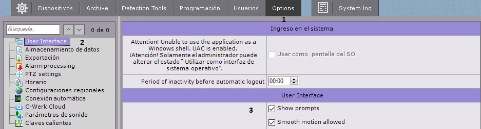 1. Elija el submenú Configuración   Opciones   Interfaz de Usuario (1-2).