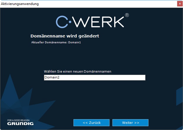 Um den bei der Systeminstallation eingestellten Namen der C-Werk-Domain zu ändern, sind folgende Schritte durchzuführen: