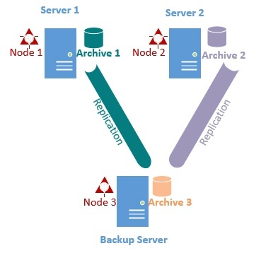 Eine Konfiguration mit dem Backup-Server kann zwei oder mehr Server enthalten.