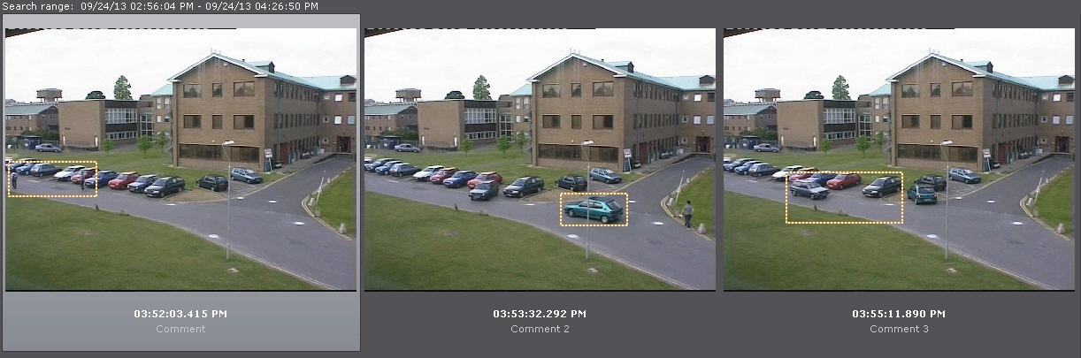Der Vorgang wird nach den definierten Kriterien gestartet. In der Suchergebnisleiste werden die Frames angezeigt, für die ein Kommentare eingegeben wurde, der den Text der Suchanfrage enthält. Unter jedem Frame erscheint der entsprechende Kommentar.