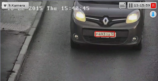 Damit wird der Suchprozess nach den vorgegebenen Kriterien gestartet. Im Suchergebnisfeld werden Frames mit den Nummernschildern angezeigt, deren Zeichen der Suchanfrage entsprechen. Im Kamerafenster wird das erkannte Autokennzeichen durch einen roten Rahmen hervorgehoben.