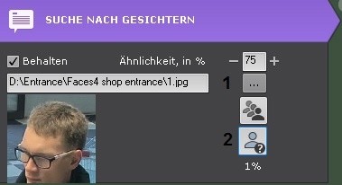 In der Suchleiste (2) wird die Wahrscheinlichkeit angezeigt, dass die Person ein "Fremder" ist.
