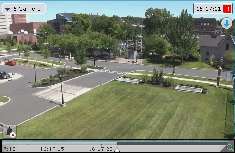 Klicken Sie auf eine beliebige Stelle in der Navigationsleiste, um vom Live-Videomodus in den Archivmodus zu wechseln (vlg. Erweitertes Archiv-Navigationsfeld).