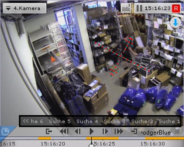 Wenn es im System gespeicherte forensische Suchanfragen nach Videokamera gibt, erscheinen in rechten unteren Ecke des entsprechenden Videoüberwachungsfensters Registerkarten dieser Anfragen.