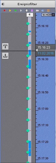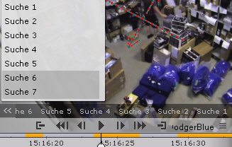 Bei einem Klicken auf die Registerkarte wird in den Archivmodus zu den Ergebnissen der entsprechenden Suche geschaltet, die auf der Zeitleiste erscheinen (Die Vorschau der Suchergebnisse erfolgt analog im Archivanalysemodus).