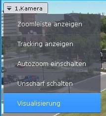 Zum Einschalten der Funktionen zur Bearbeitung des Videobilds wählen Sie im Kontextmenü des Kamerafensters die Option Visualisierung. Es kann immer nur eine Bearbeitungsfunktion gleichzeitig genutzt werden.