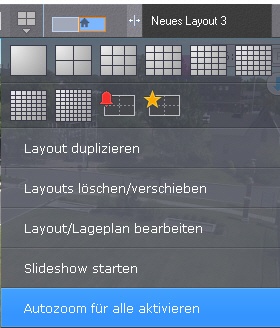 Wenn auch nur für eine Kamera im Layout Auto-Zoom aktiviert ist, erscheint im Menü in der Voreinstellung die Option Basis Auto-Zoom abschalten.