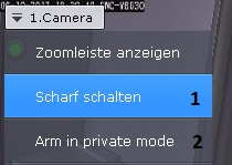 • Scharfschalten (privat) (2). In diesem Fall haben die Benutzer keinen Zugriff auf:  Echtzeit-Überwachung.