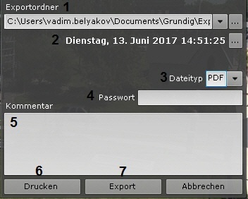 7. Erfolgt der Bildexport im Dateiformat PDF, kann ein Kommentar eingegeben werden. (5).