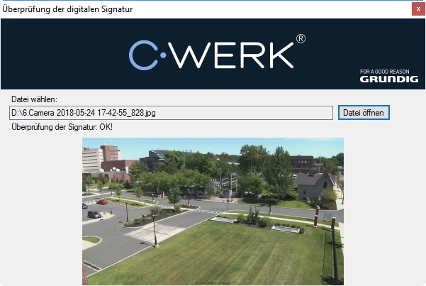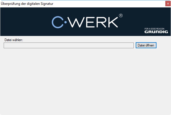 Dieses Tool dient der Überprüfung der digitalen Signatur, die beim Export von Bildern und Videoaufnahmen aus der Softwareplattform C-Werk hinzugefügt wird.