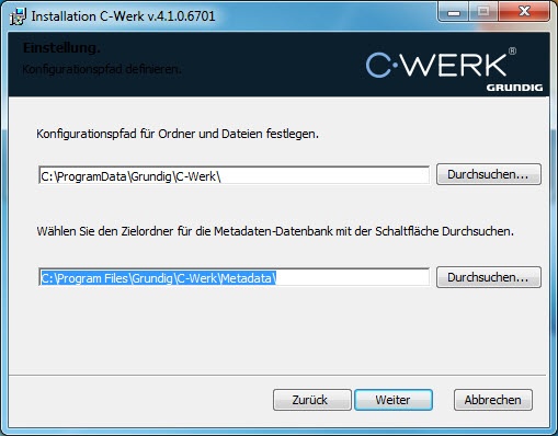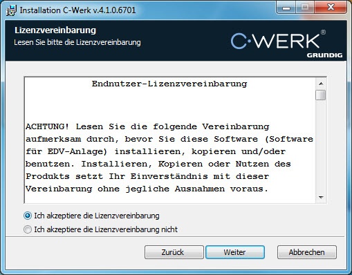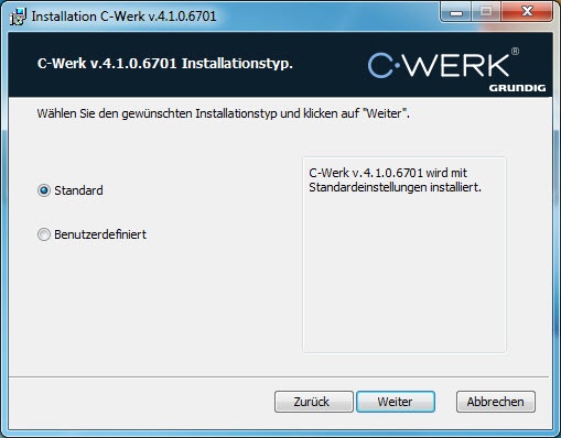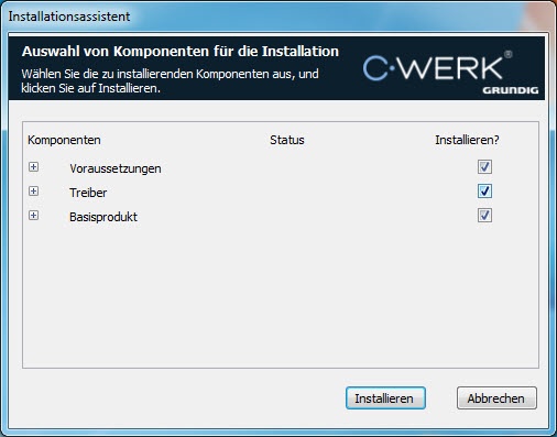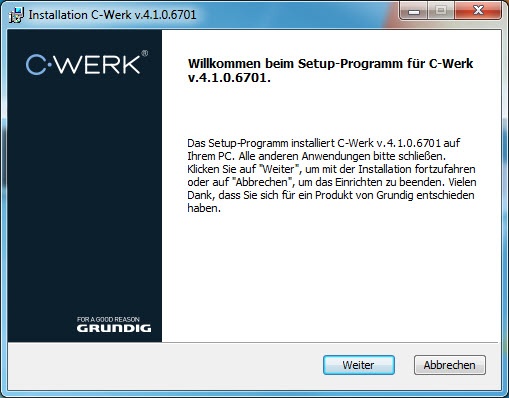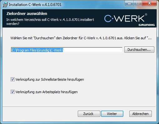In der Voreinstellung wird die Software im Ordner C:\Program Files\Grundig\C-Werk\ installiert.