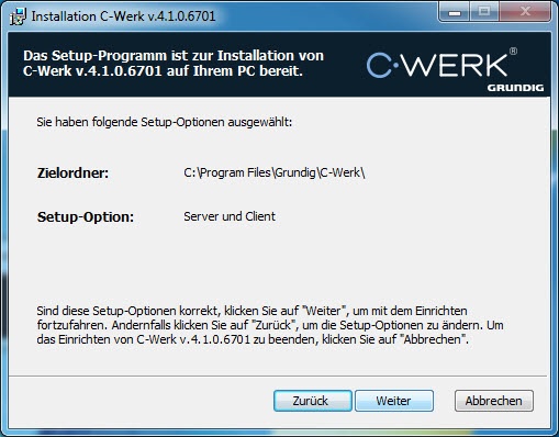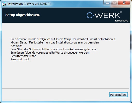 Damit ist die Installation der Software C-Werk abgeschlossen.