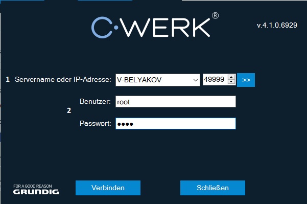 Die Softwareplattform C-Werk wird daraufhin gestartet, und es erscheint das Autorisierungsfenster.