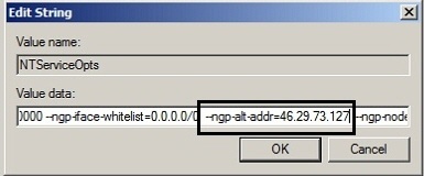 2. Suchen Sie im Wert dieses Parameters die Zeichenfolge --ngp-alt-addr, un geben Sie die IP-Adresse so ein, wie in der Abbildung gezeigt.