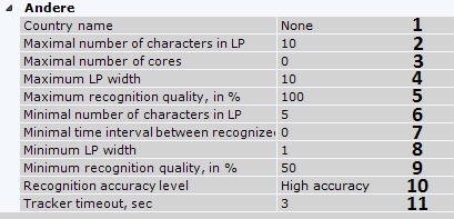 12. Geben Sie im Tracker Timeout-Feld eine Zeitspanne in Sekunden ein. Dies ist die Zeit, bevor die Erkennung wieder beginnt, nachdem ein Nummernschild erkannt wurde (11).