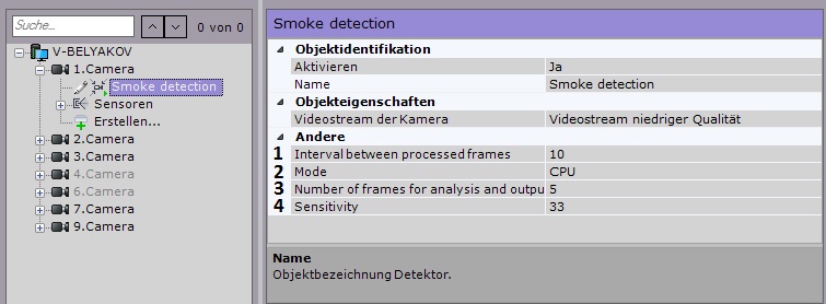 Legen Sie die minimale Anzahl der Einzelbilder mit Rauch (Feuer) fest, um das Werkzeug auszulösen (3). Die Werte müssen in einem Bereich von [5;20] liegen.