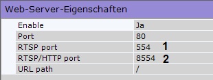 Geben Sie im Feld RTSP-Port die Nummer des Ports an, über den die Datenübertragung nach RTSP-Protokoll erfolgt (1).
