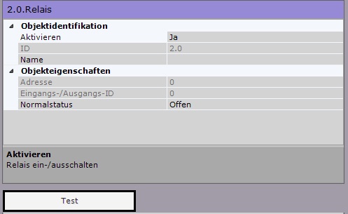 1. Wählen Sie das Objekt Relais im Objektbaum.