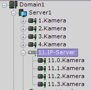 Als Ergebnis werden der IP-Server und die zugehörigen Videokameras eingeschaltet, und die Anzeigesymbole des IP-Servers und der Kameras im Obejktbaum werden grün.