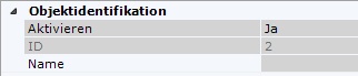 In der Gruppe Objektidentifizierung wird der Name der Videokamera eingegeben und die ID angezeigt, die bei Hinzufügung eines Geräts zur Konfiguration automatisch zugeteilt wird.