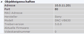Nach Hinzufügung von Videokameras zur Konfiguration mit Hilfe des Suchmasters für IP-Geräte (vlg. Erstellen und Entfernen von IP-Geräten) sind ihre Parameter zur Bearbeitung verfügbar. Die Parameter sind auf mehrere Gruppen aufgeteilt.