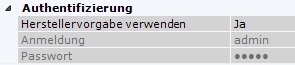 In der Gruppe Аuthentifizierung werden Anmeldename und Passwort für die Verbindung mit der Videokamera eingegeben.