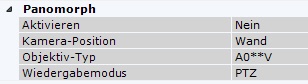 In der Gruppe Panoramamodus werden die Parameter der Fischaugenkameras eingerichtet (vlg. Einrichtung von Panoramakameras).