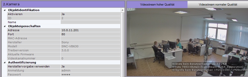 Zum Umschalten der Videostreams gibt es im Vorschaufenster die Registerkarten Videostream hoher Qualität und Videostream geringer Qualität.