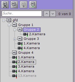 | Mithilfe der Tastatur: - Klicken Sie mit der linken Maustaste auf das Objekt Kamera/Gruppe, das Sie löschen möchten.