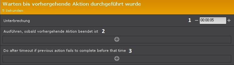 Geben Sie die Aktion an, die ausgeführt werden soll, wenn die vorherige Aktion nicht innerhalb des angegebenen Timeouts abgeschlossen wurde (3). Wenn das Timeout 00:00:00 beträgt, ist diese Option nicht verfügbar.
