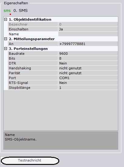 Damit ist die Einrichtung des Objekts SMS abgeschlossen.