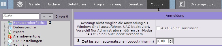 Es besteht die Möglichkeit, den Client automatisch herunterzufahren, wenn der Systembenutzer eine bestimmte Zeit lang inaktiv war, d.h. wenn es keine Signale von den Eingabegeräten (Tastaturen, Maus, Joystick) gibt.