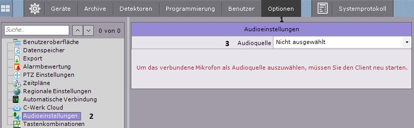 Damit ist die Einstellung der der Audioparameter am Client abgeschlossen.