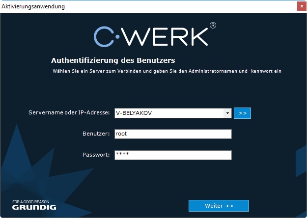 Die Aktivierung der Lizenz für die Softwareplattform C-Werk erfolgt mit Hilfe des entsprechenden Tools.