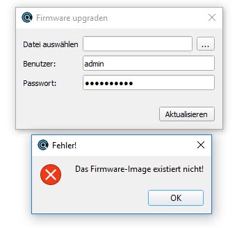 Wenn die Firmware-Datei nicht ausgewählt ist, liegt nach dem Klicken auf die Schaltfläche Aktualisieren der Fehler "Das Firmware-Image existiert nicht!" vor.