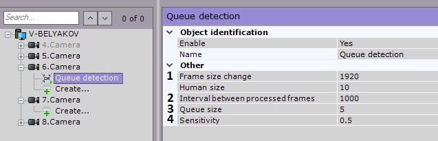 - Specify the detection tool sensitivity in standard units from 0 to 1 (4). The higher the sensitivity, the smaller the disturbances analyzed by the queue detection algorithm. Alternatively, the lower the sensitivity, the greater changes in scene are processed by the queue detection tool.
