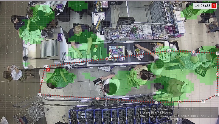 - In the Interval between processed frames (3) field, specify the time period in milliseconds between frames analyzed by the people counter within the area. The value should be within the range of 500 – 3000. The smaller the value of this parameter, the greater the CPU load.