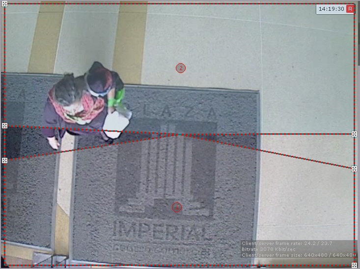 In the Preview window, set the detection area. It is divided to two sectors, #1 and #2. When an object moves from #2 to #1, the system treats it as entry; alternatively, #1 to #2 is treated as exit.