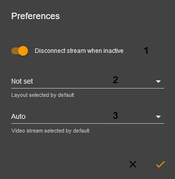 Select the default video stream to be displayed for each camera of the current layout (3). This setting is common for all Web Client users in a particular browser.
