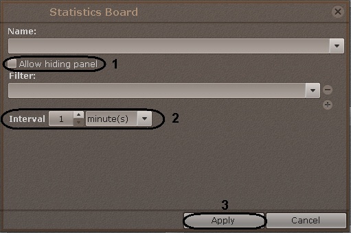 3. To allow operators to hide the information board from a layout, select the Allow hiding panel check box (1).