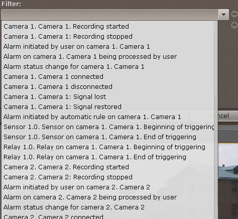 To add events of the same type from different devices, enter the name of the event in the Filter field. This will list only the events of the chosen type. To list all events, clear the filter field.