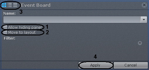 - To automatically open the layout with this information board when an event matching the filter occurs, select the Switch to layout check box (2) (see paragraph 5).