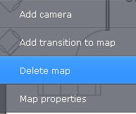 To delete a map, in the lower-left corner of the screen, select the  button on the corresponding tab. Alternatively, in the context menu, you can select Delete map.