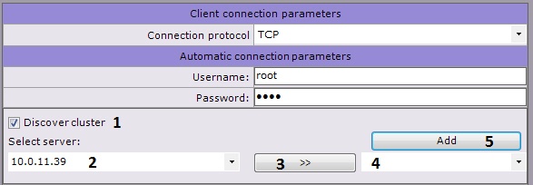 - Enter the IP address of any cluster server (2) and click the button (3).