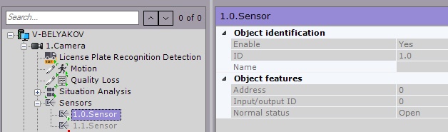 Check the functioning of the sensor in the Devices tab (see the section The Input Object). The detection properties field in the Detection Tools tab duplicates the settings entered in the Devices tab under Settings and is not editable.