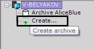 You can also create an archive by selecting the matching command in the context menu of the Server object (the menu can be brought up by right-clicking the name of the Server)